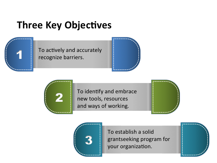 In this series, I'm going to share with you some of the tricks of the trade. We will cover everything from big picture thinking and how it can drive your grantseeking efforts, to how to use volunteers effectively (when it's a help and when it's a hindrance). These "tricks" should help you organize your approach to grantseeking by teaching you how to create the time to do the job and do it well.